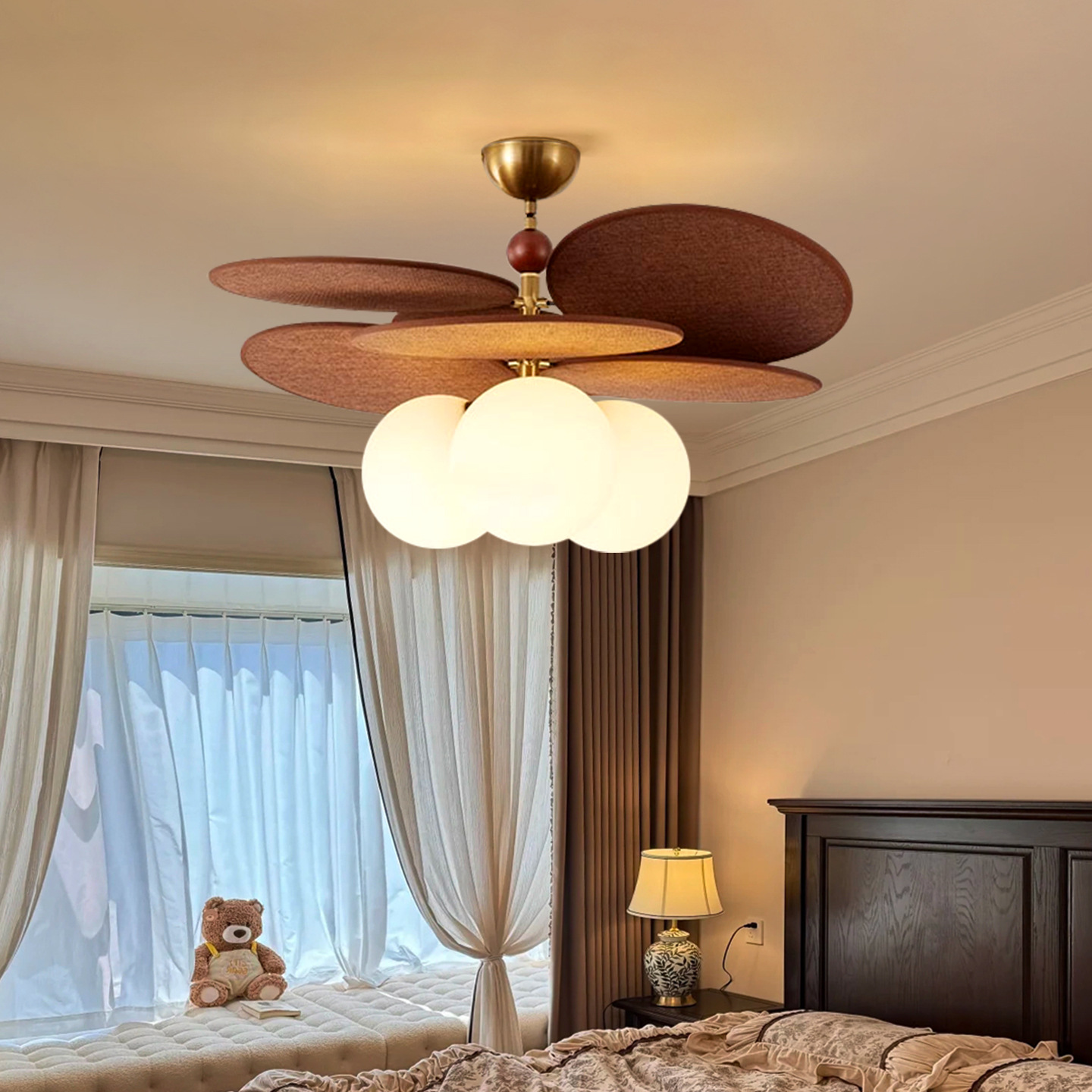 法式中古风卧室吸顶灯复古胡桃木色护眼主卧书房360度摇头风扇灯