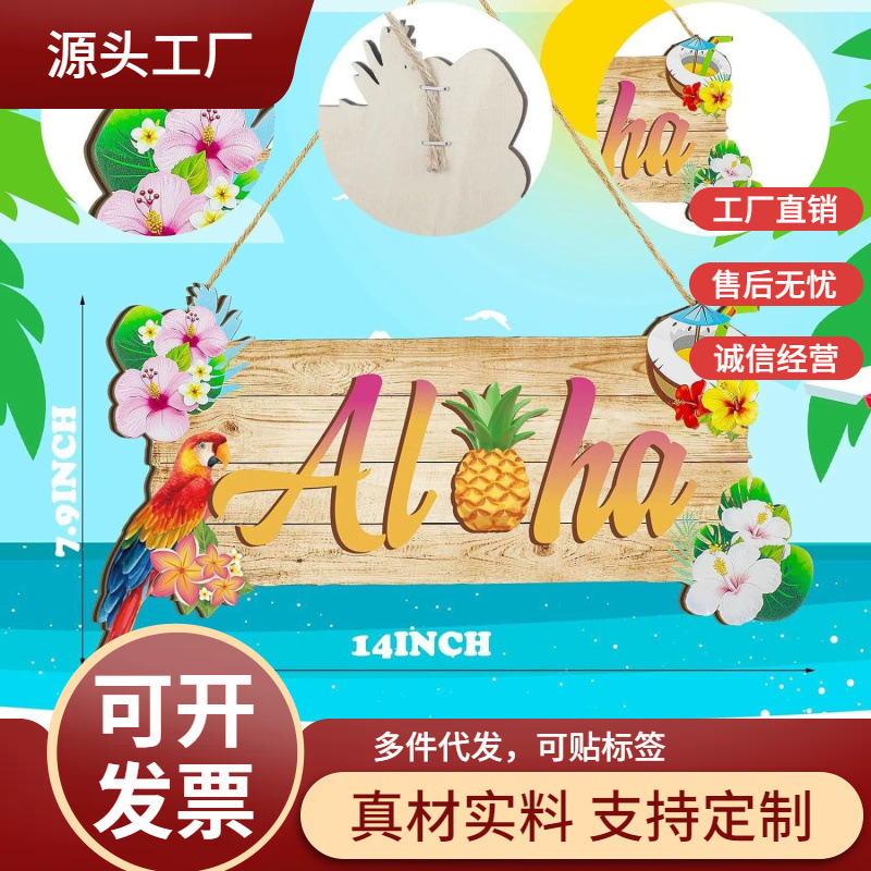 RattanView夏威夷阿罗哈派对装饰阿罗哈木制挂牌派对用品门牌挂饰
