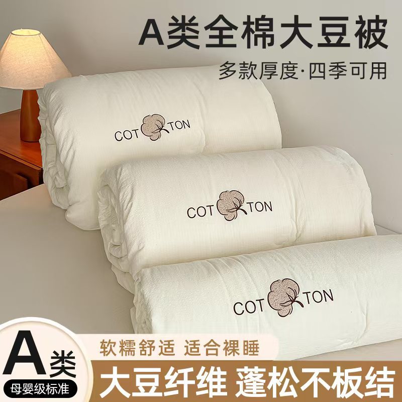 A类原棉水洗提花大豆被全棉被子床上用品被芯夏被单双人春秋冬被1