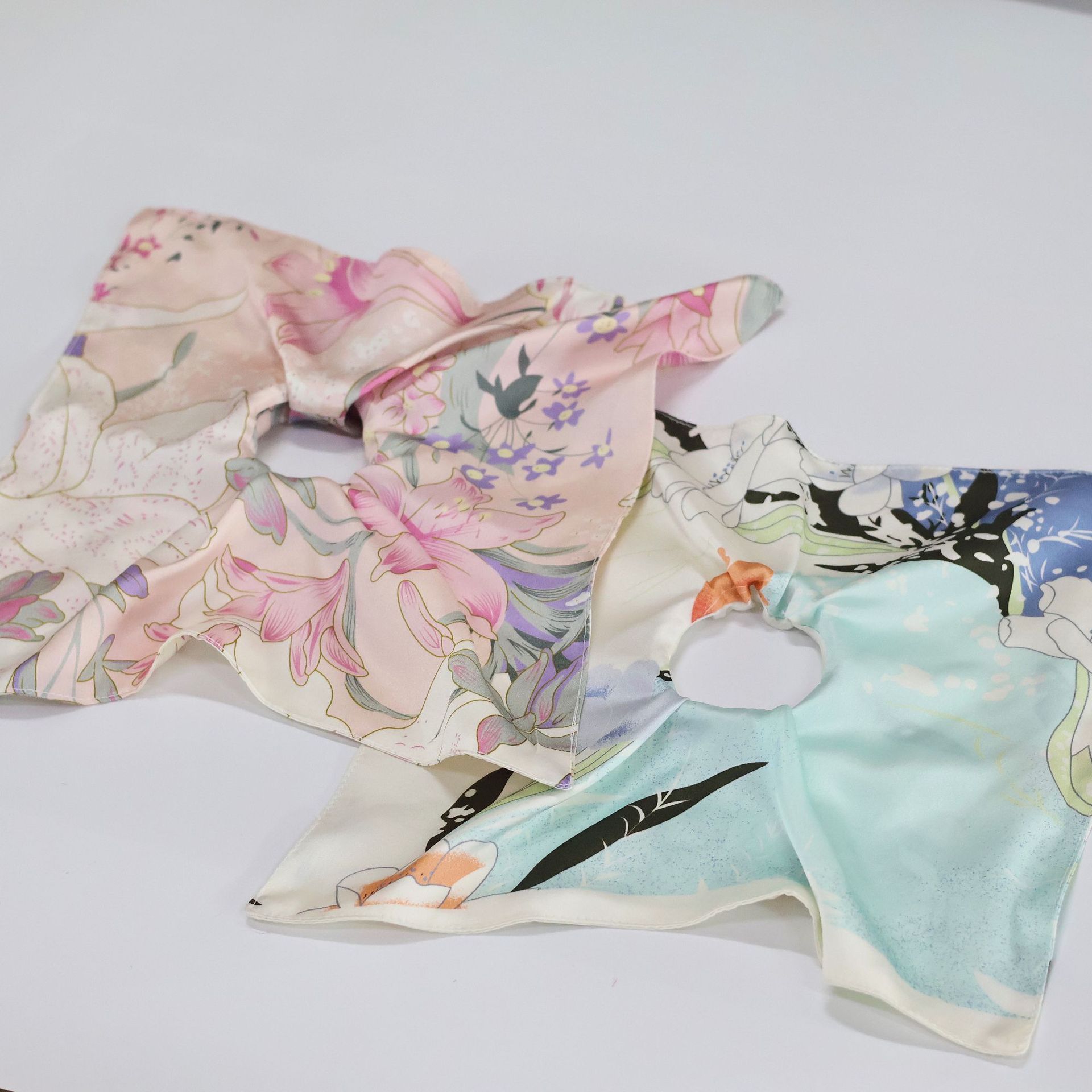 桑蚕丝气质发圈方形大风车扎头花洋气发绳INS头饰方巾简洁大方