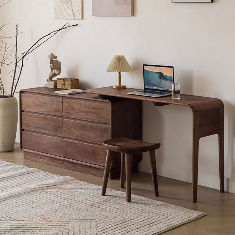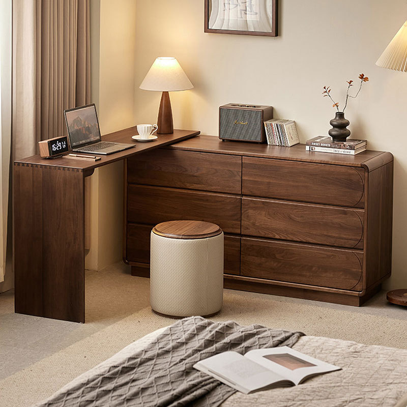 北美黑胡桃木斗柜梳妆台一体书桌卧室简约多功能全实木收纳六斗橱
