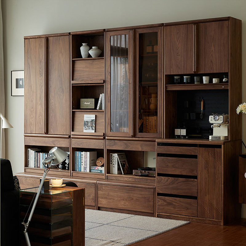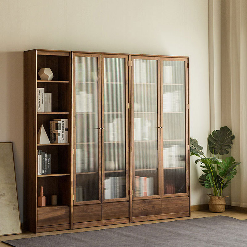 北美黑胡桃木组合书柜简约日式实木展示柜书房置物柜玻璃门收纳柜