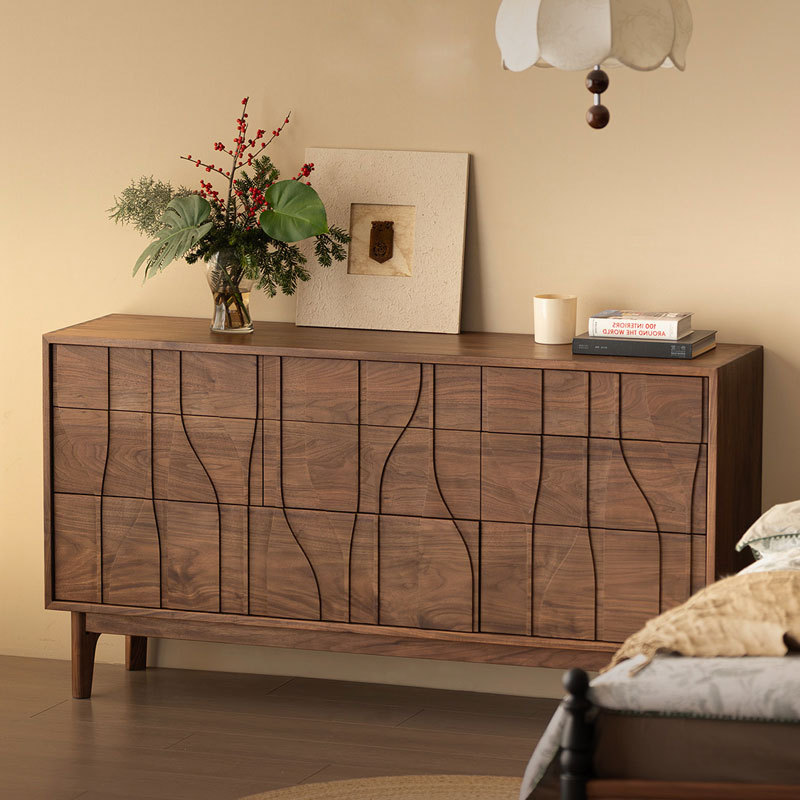 北美黑胡桃木餐边柜现代简约收纳储物柜北欧日式实木樱桃木靠墙柜