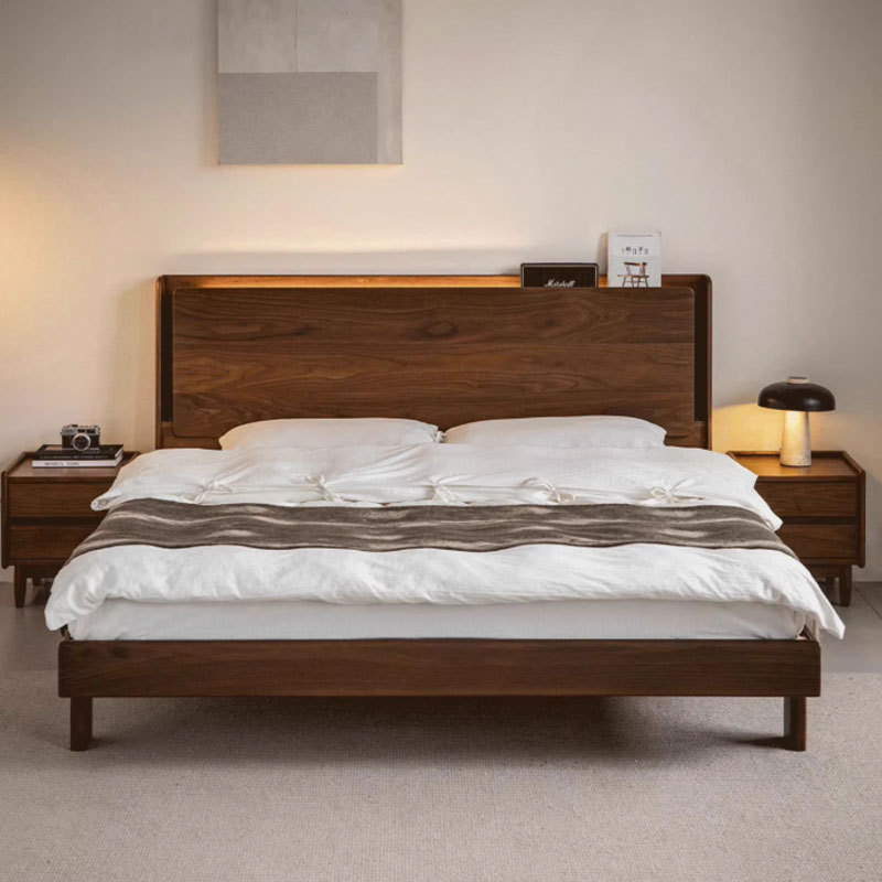 北美黑胡桃木暮光实木床北欧简约家用小户型齐边床主卧1米8双人床