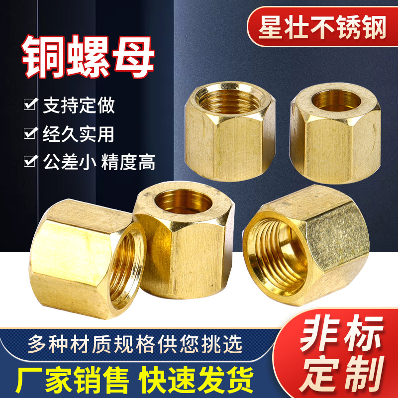 定制非标铜螺母铜螺帽外六角螺母螺丝帽内丝螺母支持来图来样定制