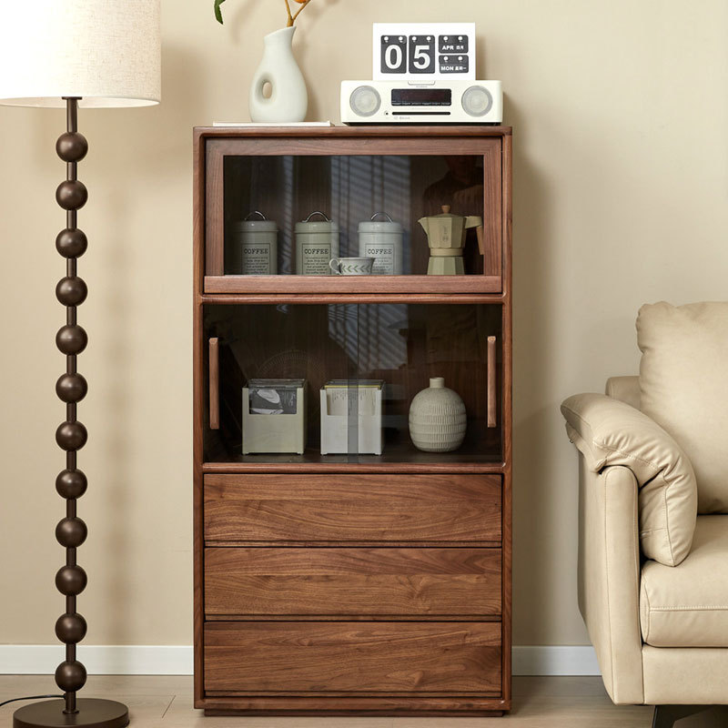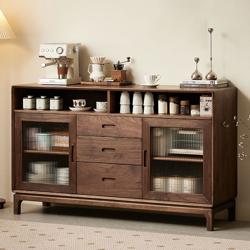 北美黑胡桃木餐边柜实木一体靠墙酒柜咖啡柜北欧简约储物高柜橱柜