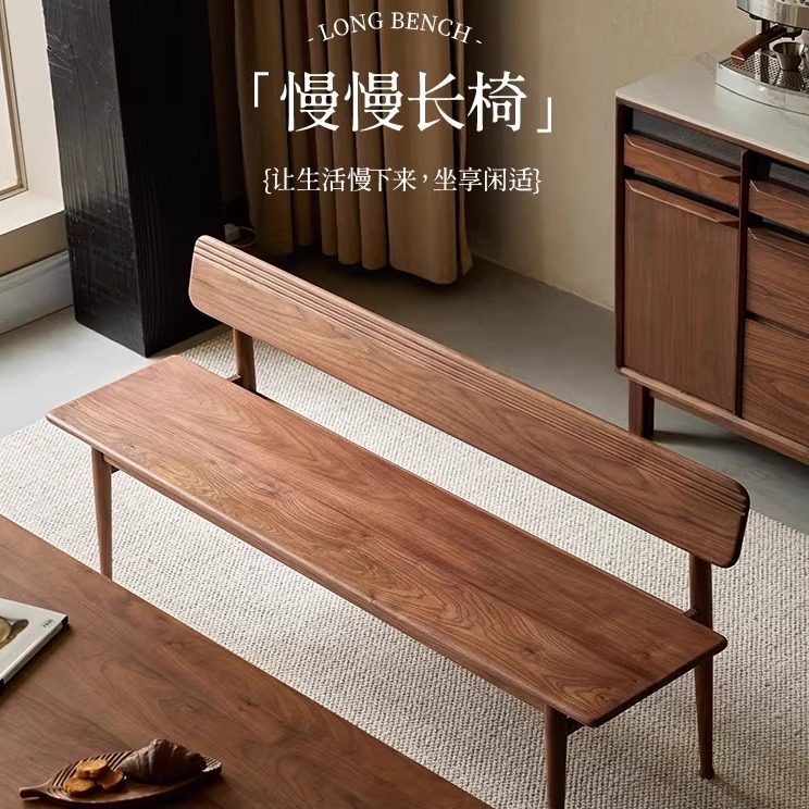 黑胡桃木全实木长条凳餐椅牀尾凳卧室樱桃木原木客厅小户型玄关凳