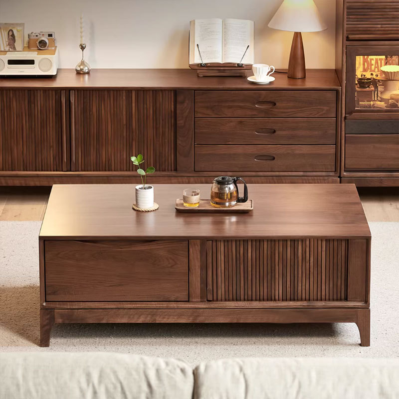 北美黑胡桃木全实木茶几北欧简约客厅茶桌家用小户型多功能储物柜