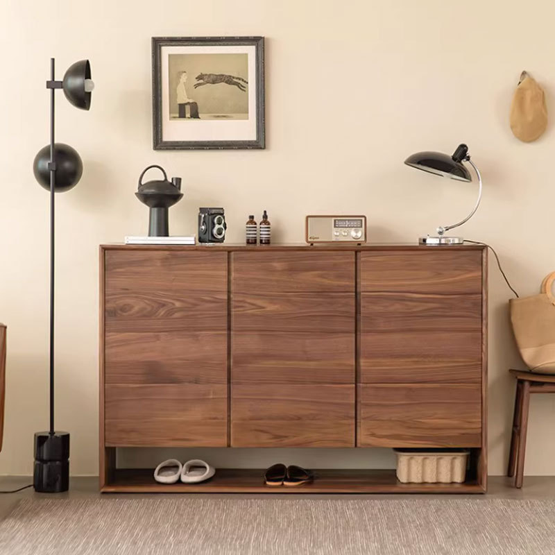 北美黑胡桃木实木鞋柜北欧简约樱桃木玄关柜家用小户型客厅收纳柜