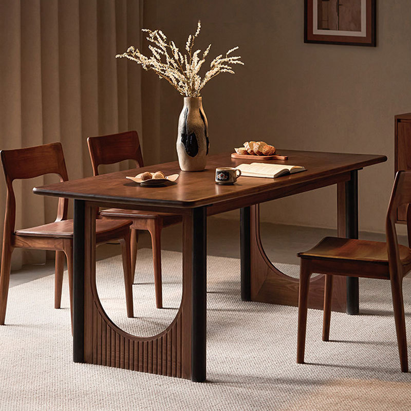北美黑胡桃木实木餐桌北欧简约复古撞色餐厅饭桌高级感工作台