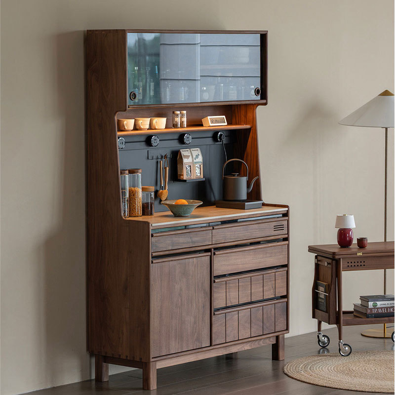 北美黑胡桃木餐边柜全实木茶水柜小户型靠墙一体收纳客厅边柜储物