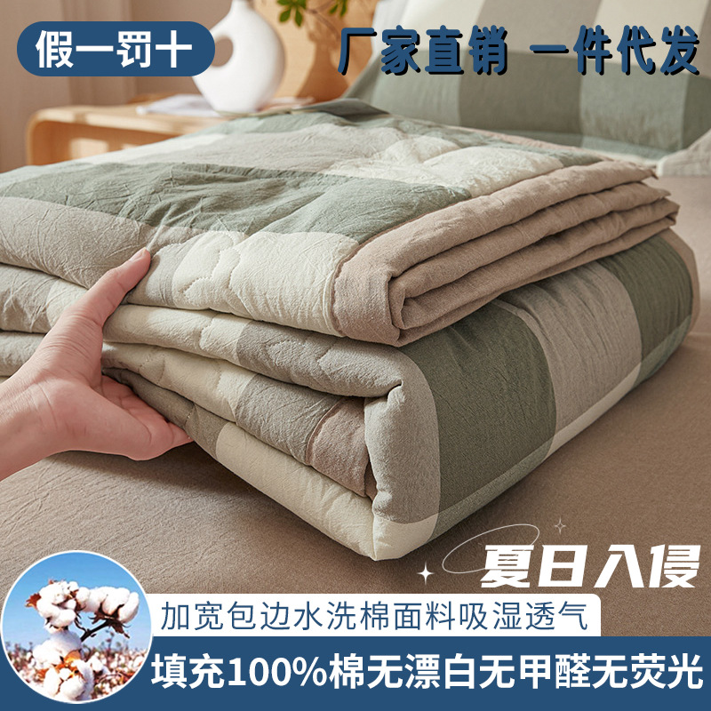 100%纯棉花夏凉被水洗棉空调被春夏季薄被子宿舍单人被褥被芯柔软