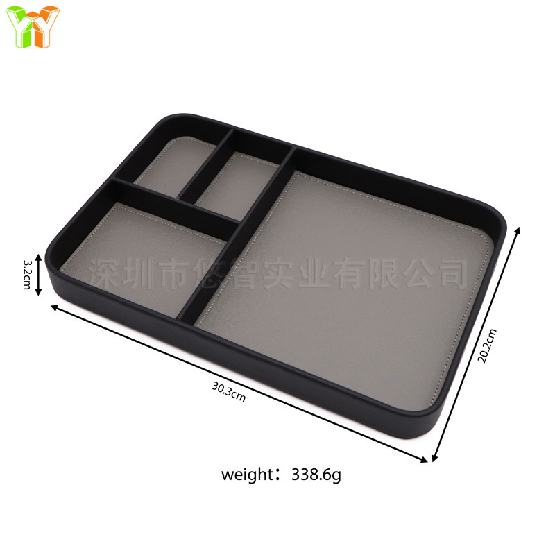 木底轻奢皮革托盘皮革首饰收纳盒简约多格玄关手表首饰皮革收纳盘