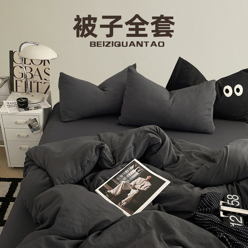 良品 100%纯棉床单无印格宿舍三件套件全棉a类枕套水洗棉加工定制