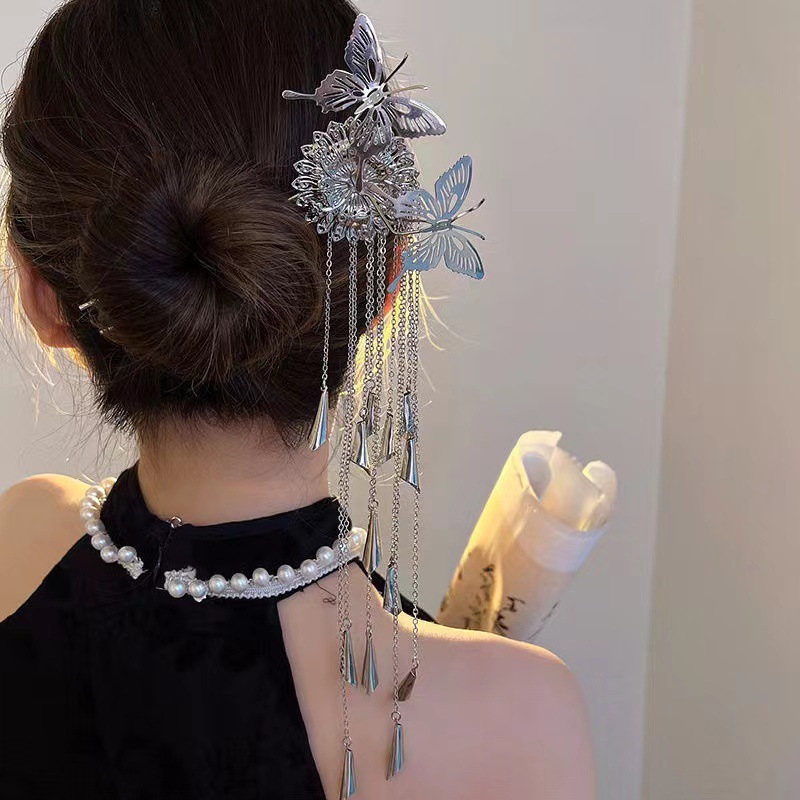 新中式超仙花朵蝴蝶流苏发钗发簪女现代简约小众设计高级感古装风