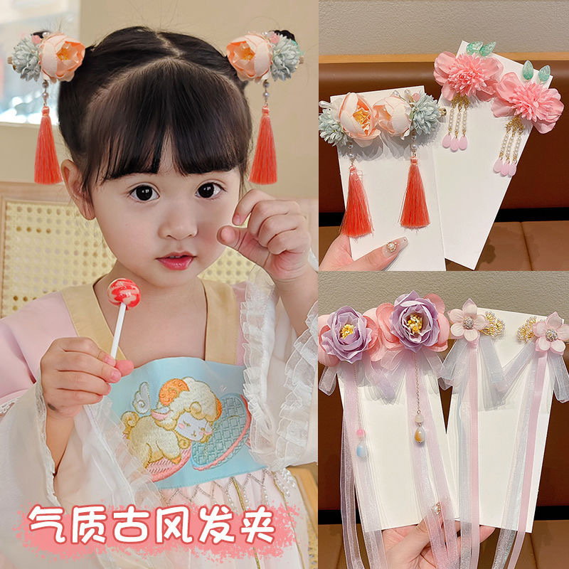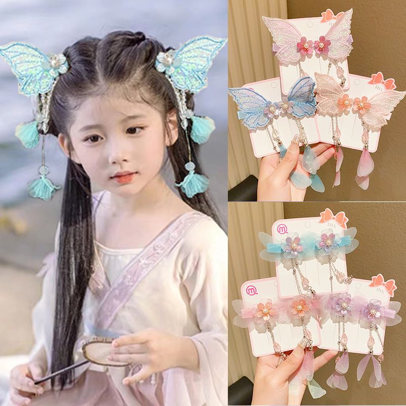2023新款立体汉服发饰女童古风蝴蝶流苏发夹洋气超仙网红侧边对夹