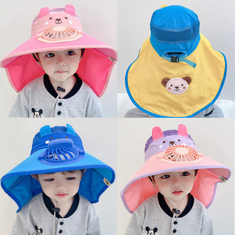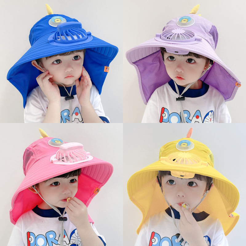 带风扇帽子儿童夏季可爱宝宝遮阳帽沙滩游玩太阳帽子防晒护颈充电