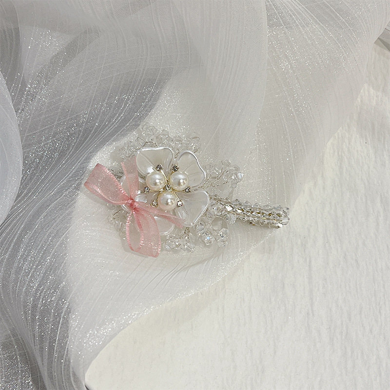 轻奢水钻高级感花朵蝴蝶结发夹长一字夹气质边夹女鸭嘴夹甜美发卡