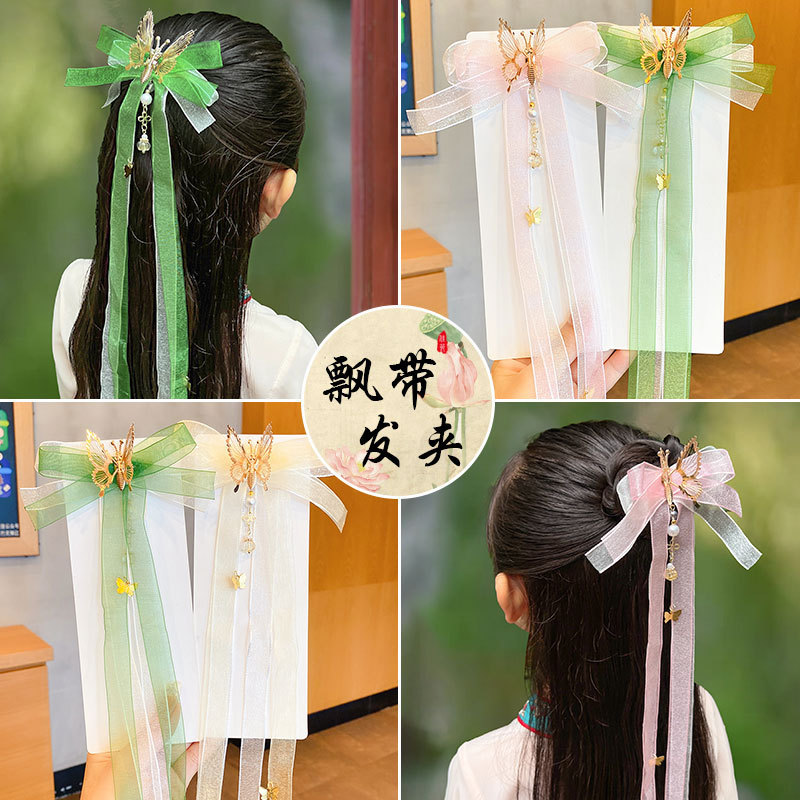 儿童古装汉服发夹头饰网红仙气古风蝴蝶发卡流苏女孩夹子飘带女童