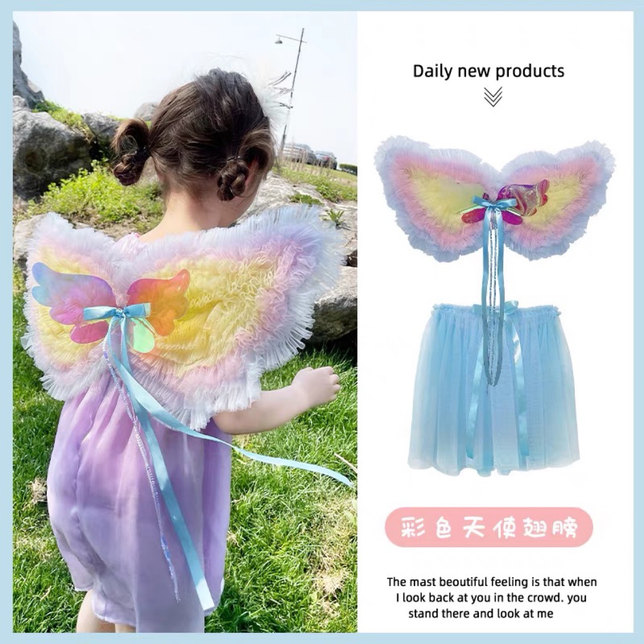 儿童天使彩虹蝴蝶翅膀纱裙两件套小女孩表演装扮背饰仙女配饰道具