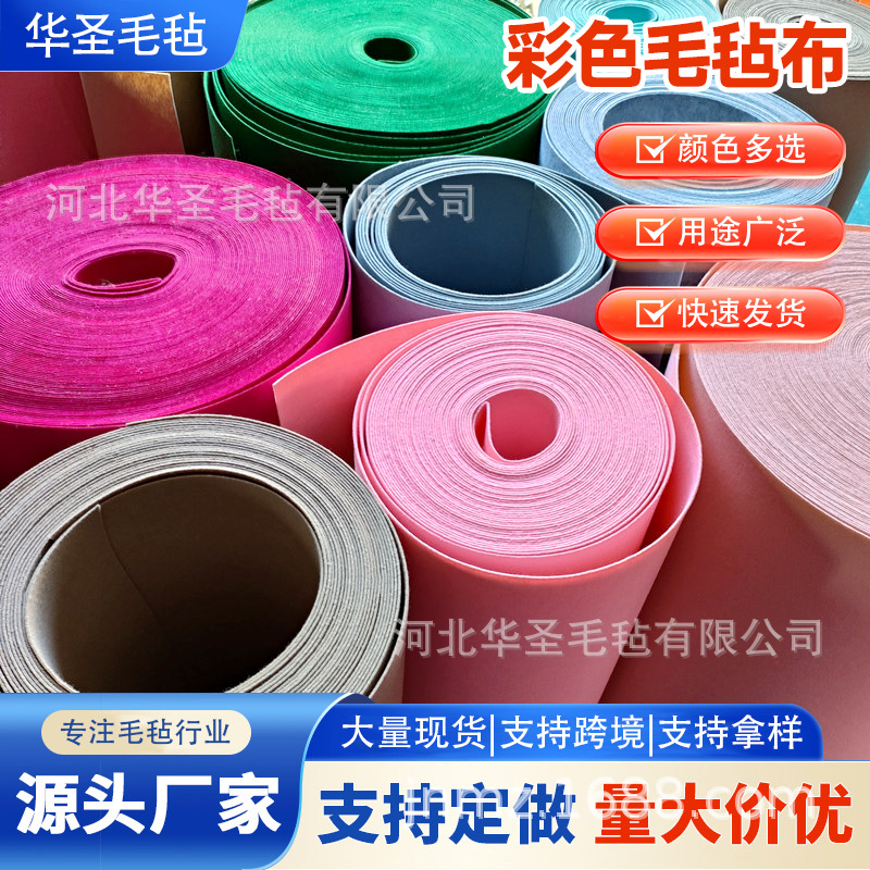 OEKO认证BSCI工厂彩色化纤毛毡布家居家纺针刺无纺布背胶软毛毡布