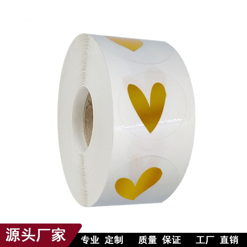 批发卷装爱心PVC烫金透明贴不干胶密封标签礼物封口标签
