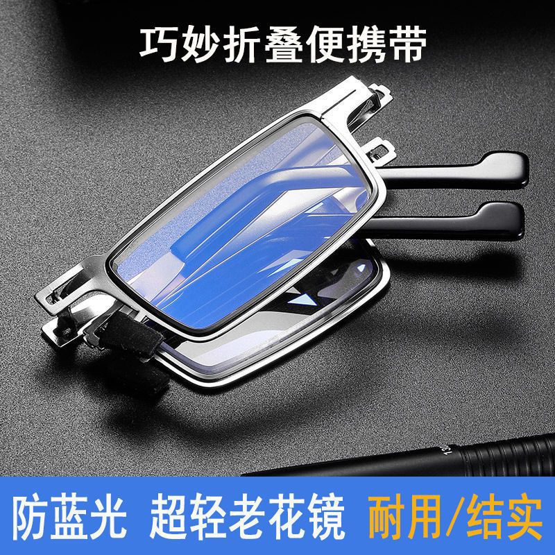 新款方框钢皮折叠老花镜防蓝光眼镜便携式男女老人平光镜批发