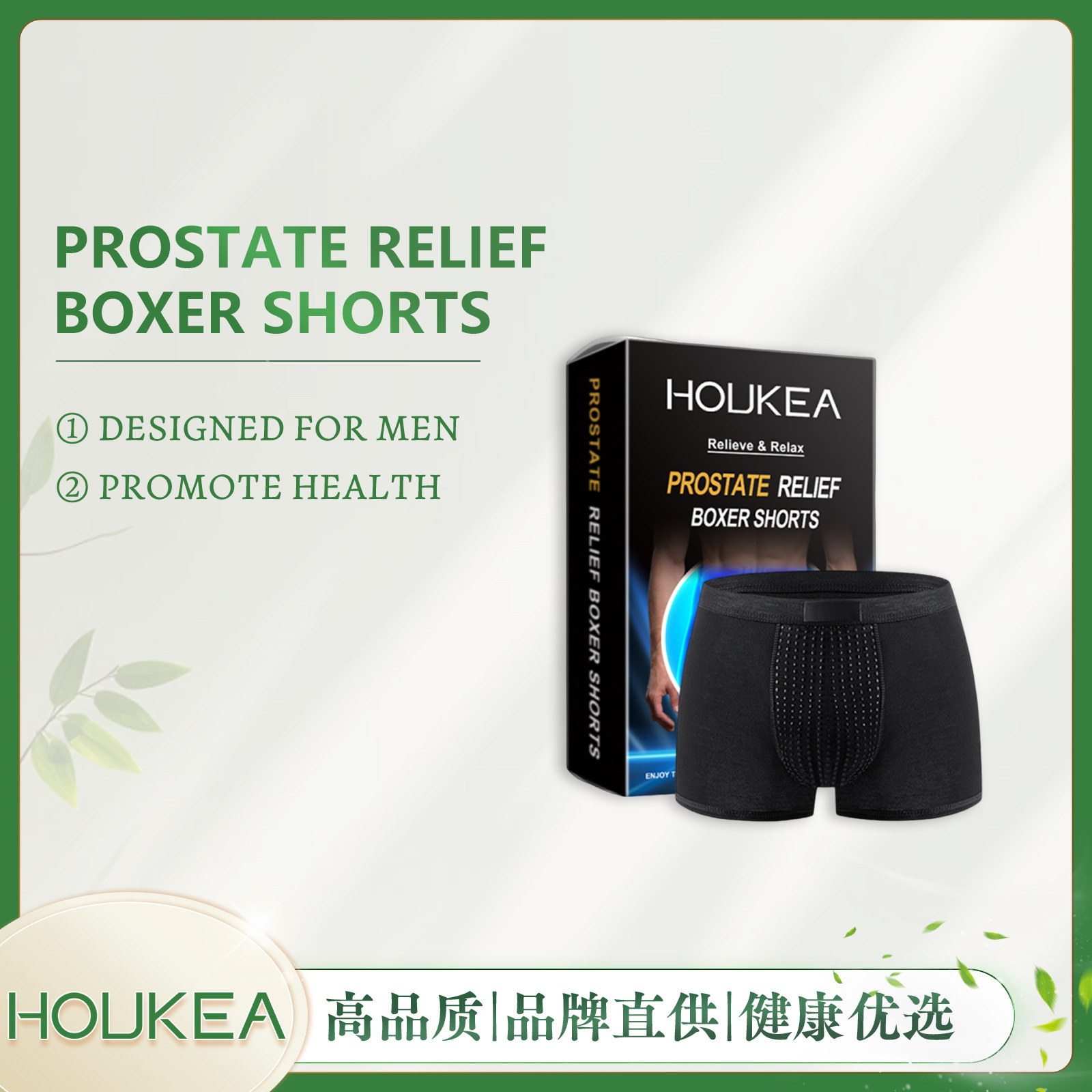 HOUKEA 男士平角内裤 高弹力中腰面料透气防磨腿男士紧身运动内裤