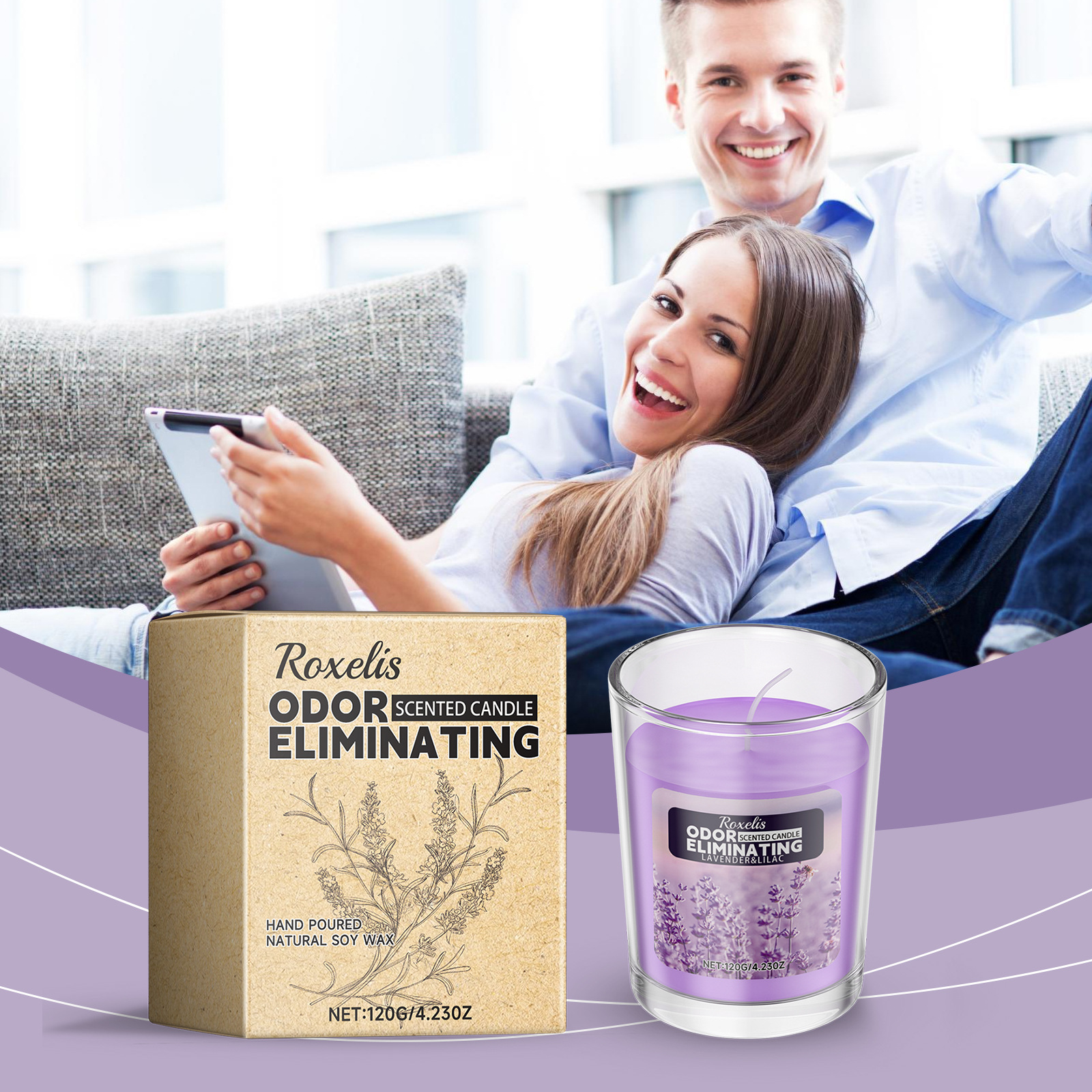 薰衣草香薰蜡烛 持久留香温和成分一室清香舒适净化异味浪漫氛围