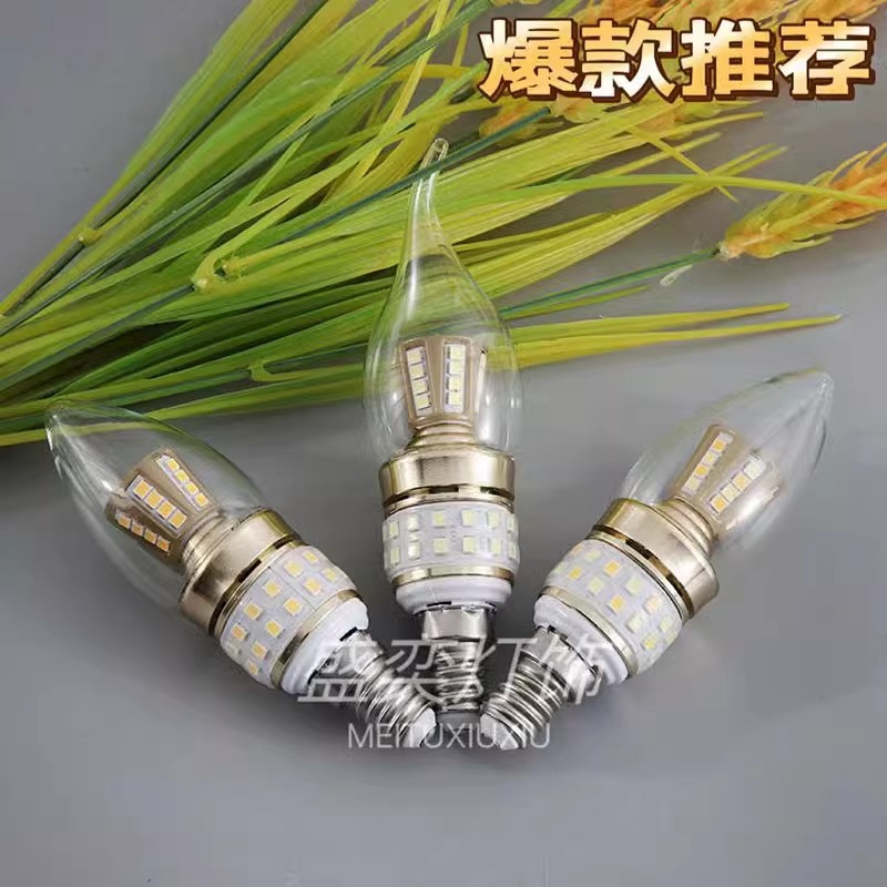 LED蜡烛灯泡E27e14螺口尖泡拉尾室内水晶吊灯客厅节能灯照明 光源