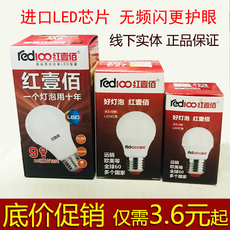红壹佰灯泡LED球泡LED大功率节能灯5W9W18W白光家用厂房车间仓库