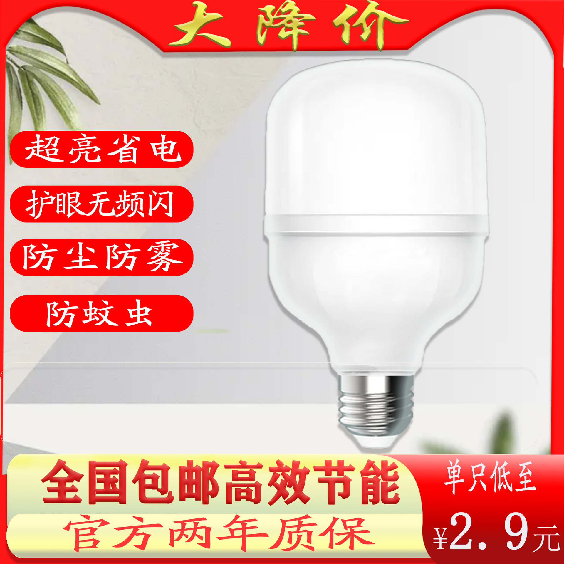 红壹佰灯泡节能灯LED球泡LED大功率店铺灯20W30W40W50W仓库车间灯