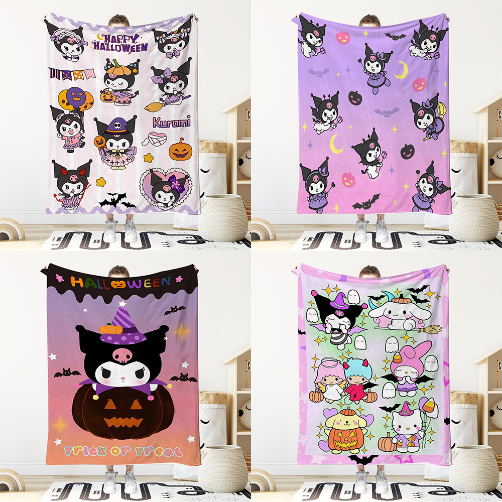 跨境万圣节库洛米儿童卡通法兰绒毛毯亚马逊家居装饰盖毯午睡毯