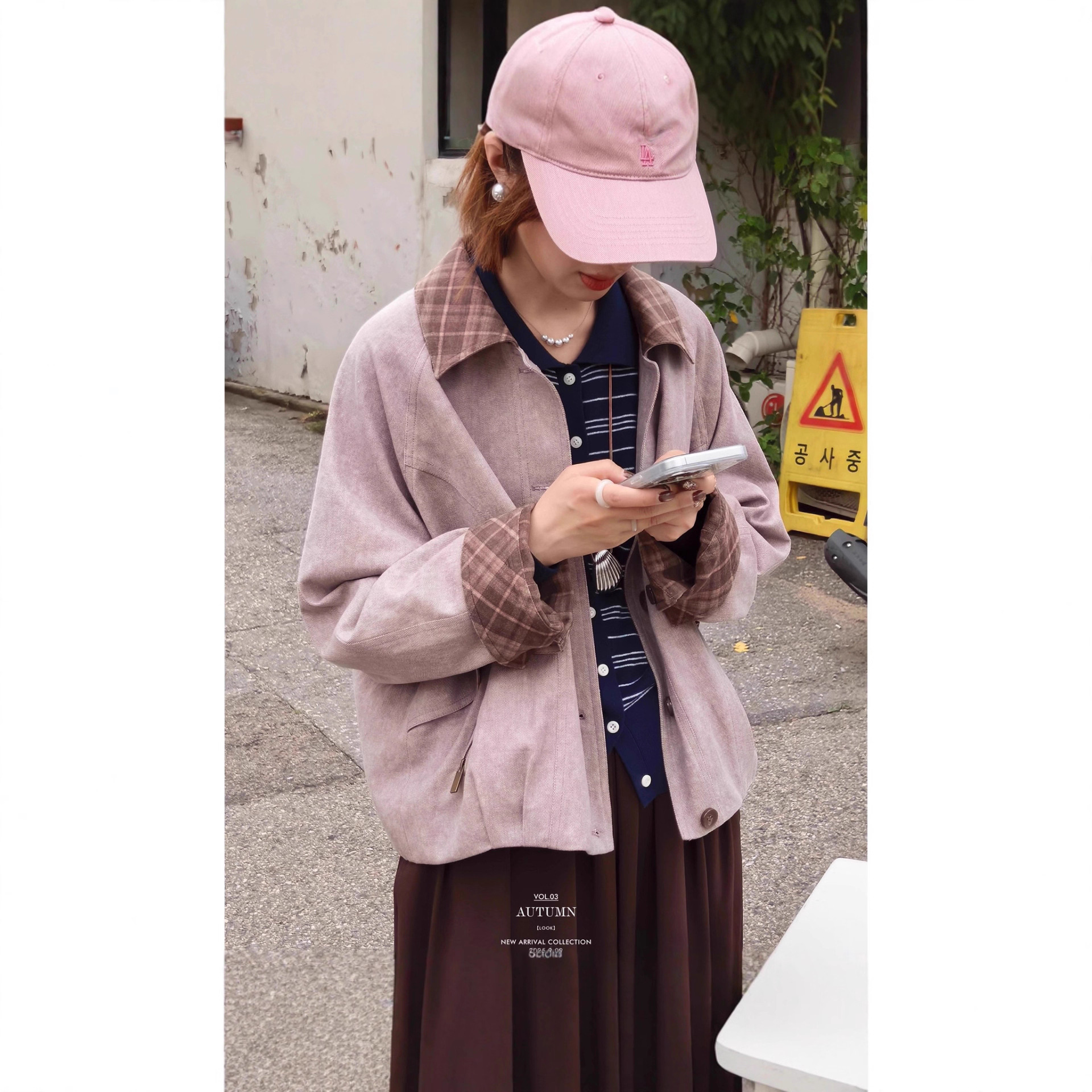 白描工作间"帕斯托信箱"巴恩风格纹撞色领秋季工装夹克短外套