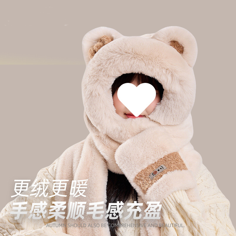 卡通小熊保暖滑雪帽子围巾围脖一体女冬季护耳罩雷锋抖音爆款批发