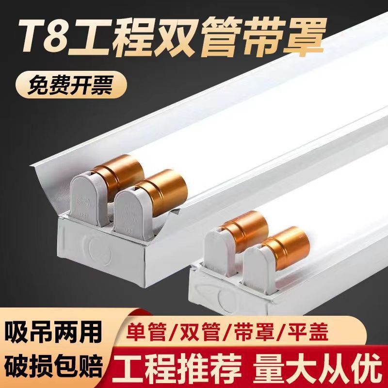T8LED0.6米1.2米灯管日光灯单双管带罩支架灯单支双支平盖全套