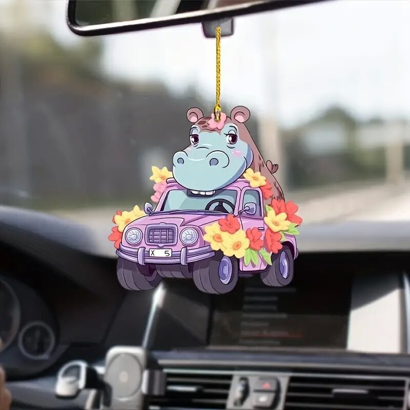 跨境热销情人节装饰挂件亚克力河马卡车平面挂件车挂节日礼物装饰