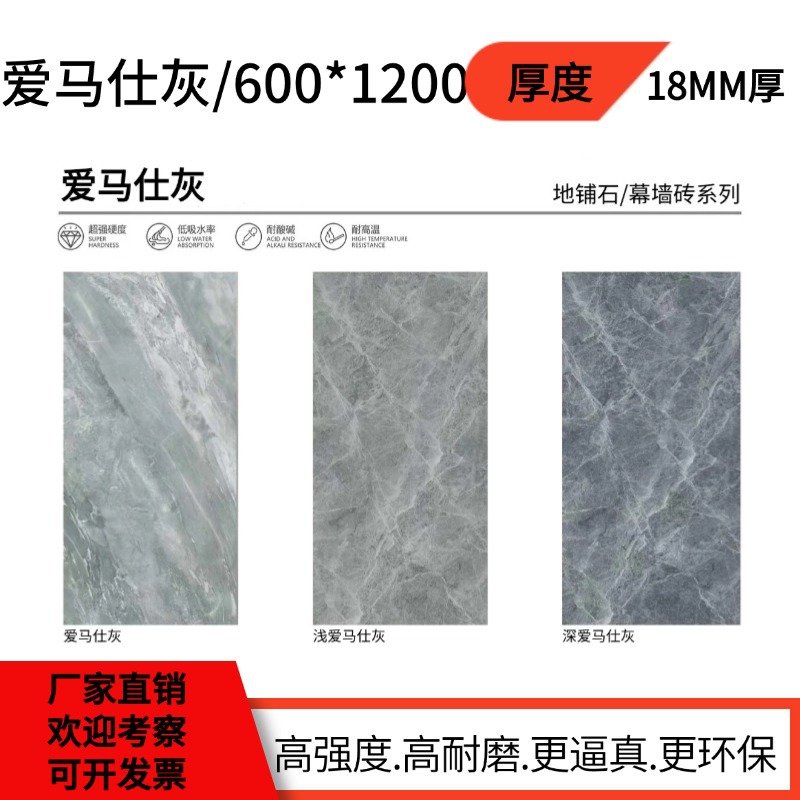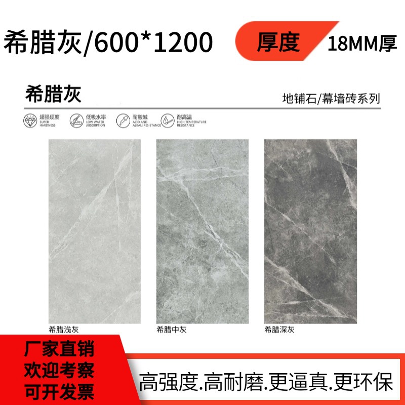 600*1200爱马仕灰户外干挂砖幕墙墙面砖仿大理石柔光面仿古面