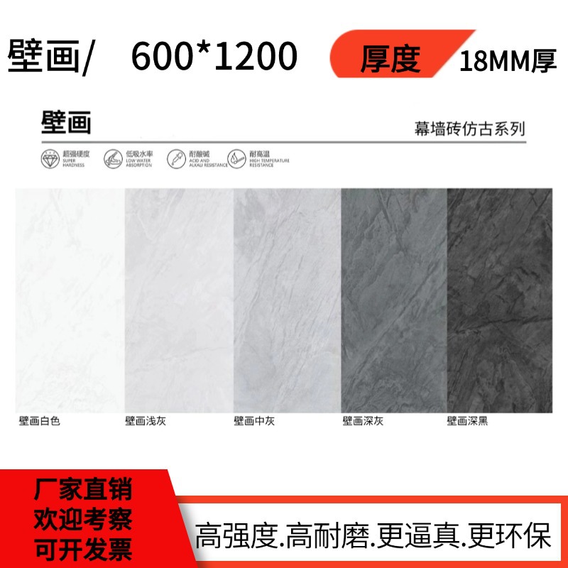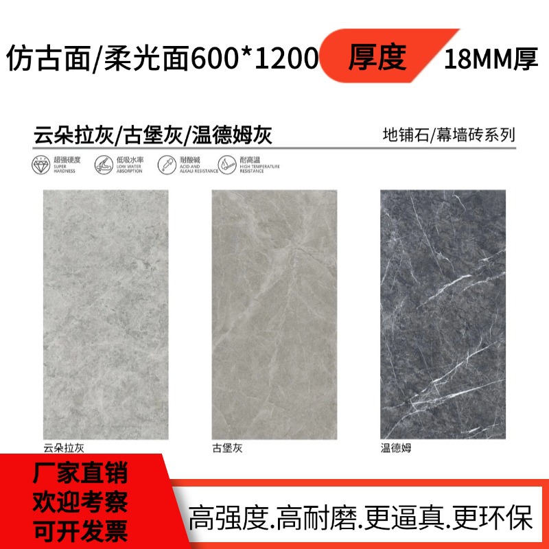 600*1200*18厚地砖仿古幕墙砖石英砖挂墙大理石柔光面温德姆灰