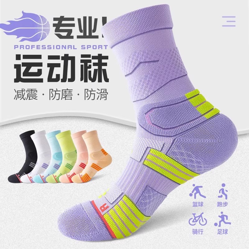 羽毛球袜 耐磨马拉松跑步棉袜 运动中筒纯棉毛巾底篮球健身专用袜