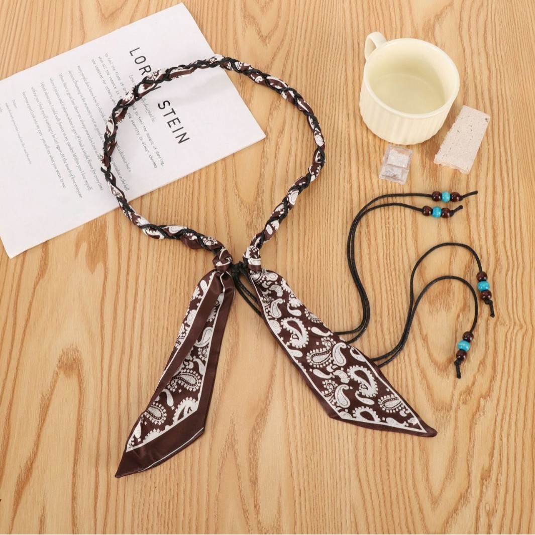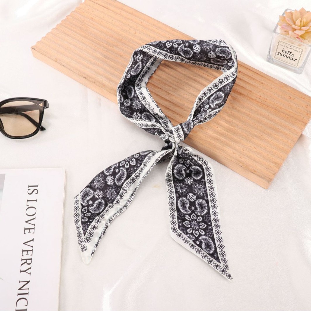 腰果花丝巾女法式复古ins风飘带细窄长条领巾扎头发绑包包配饰