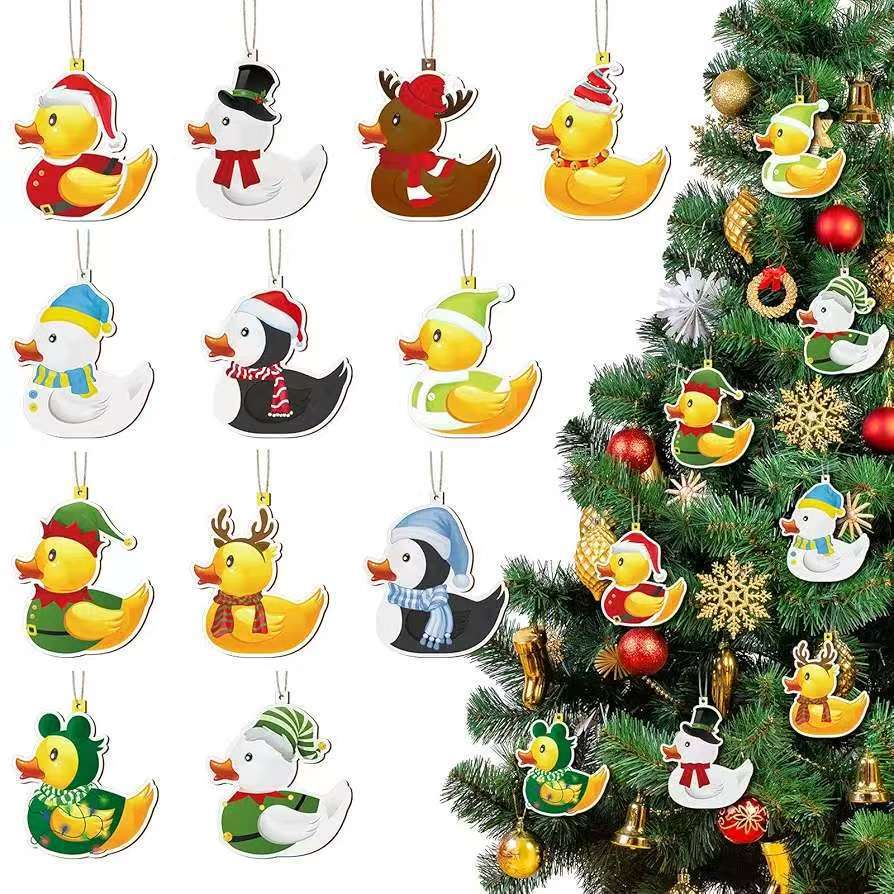 跨境新品圣诞树装饰木制挂饰小鸭子木制圣诞挂饰装饰圣诞派对装饰