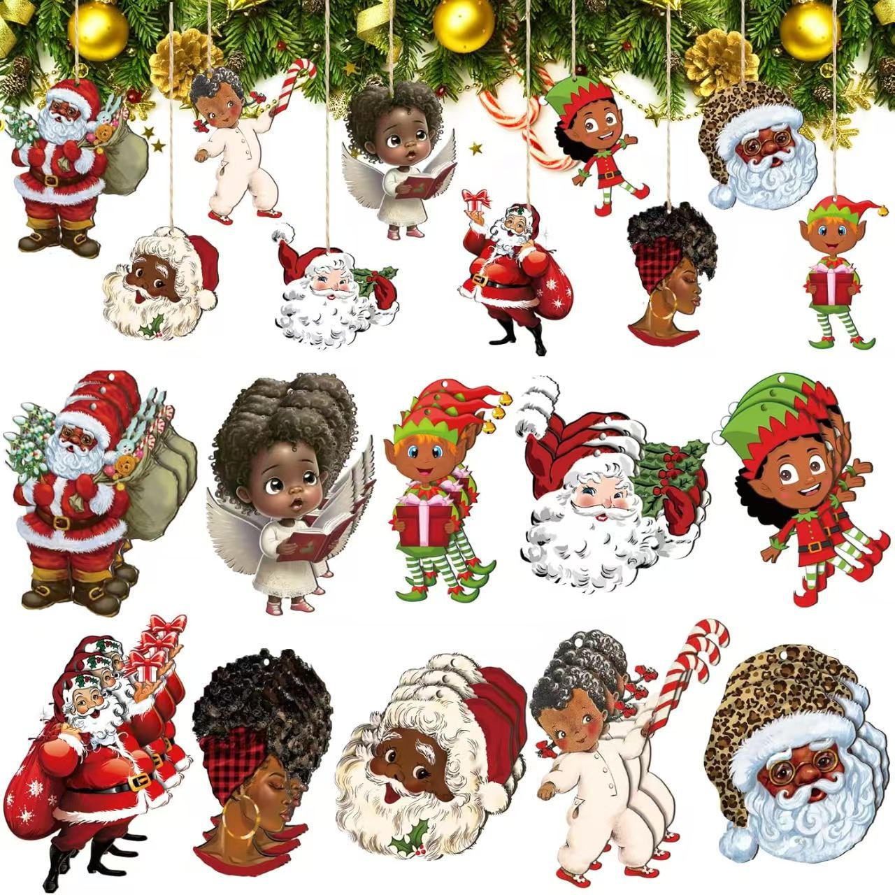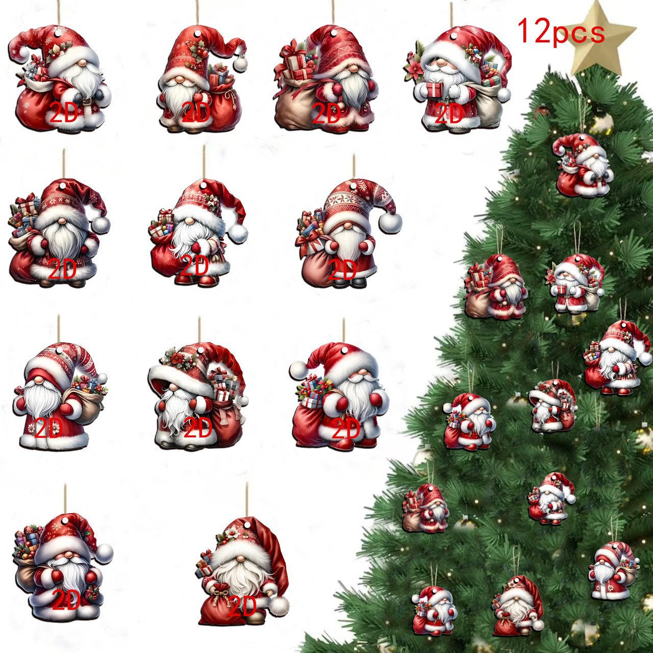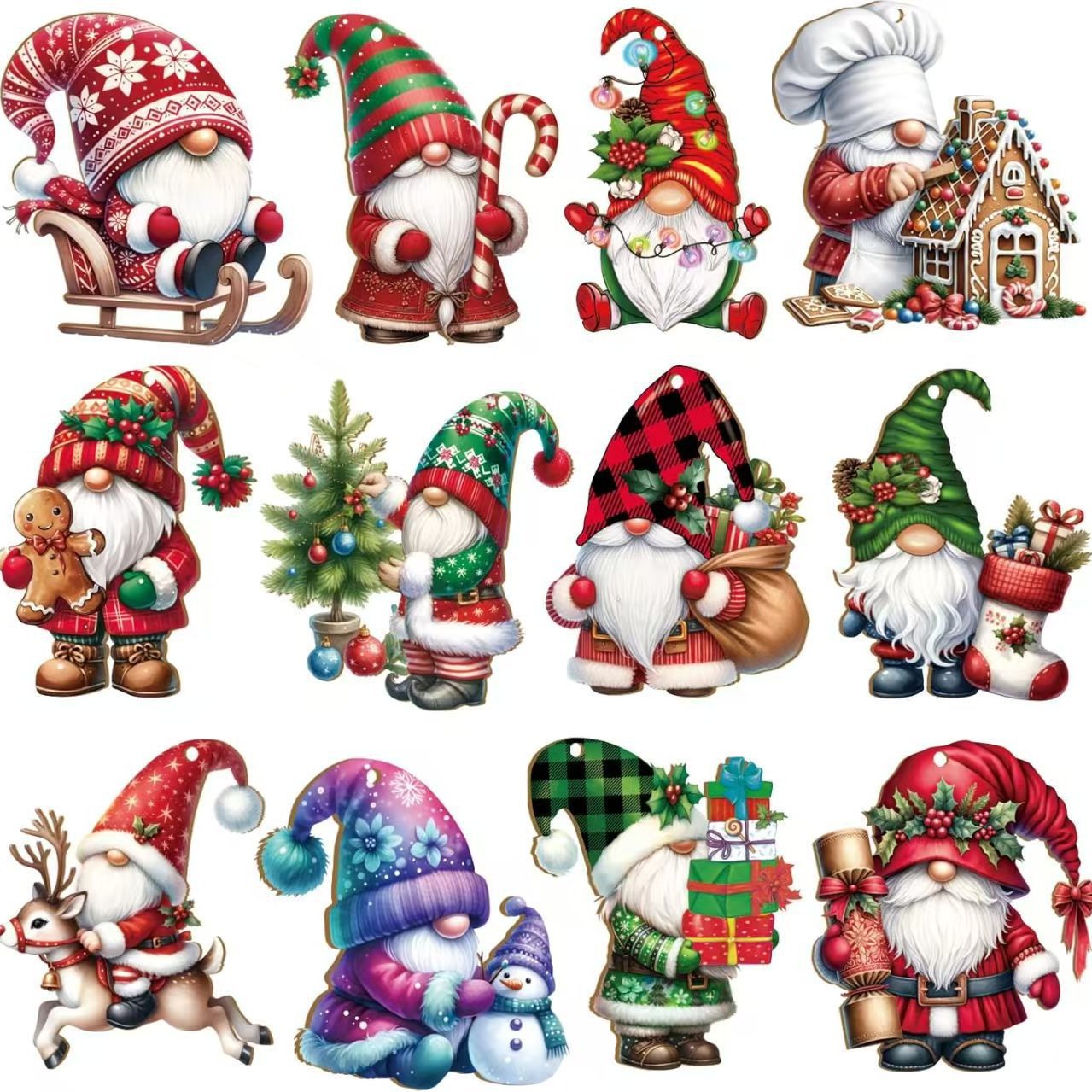 跨境新品12件圣诞精灵木质装饰挂件—节日季节的完美礼物装饰品