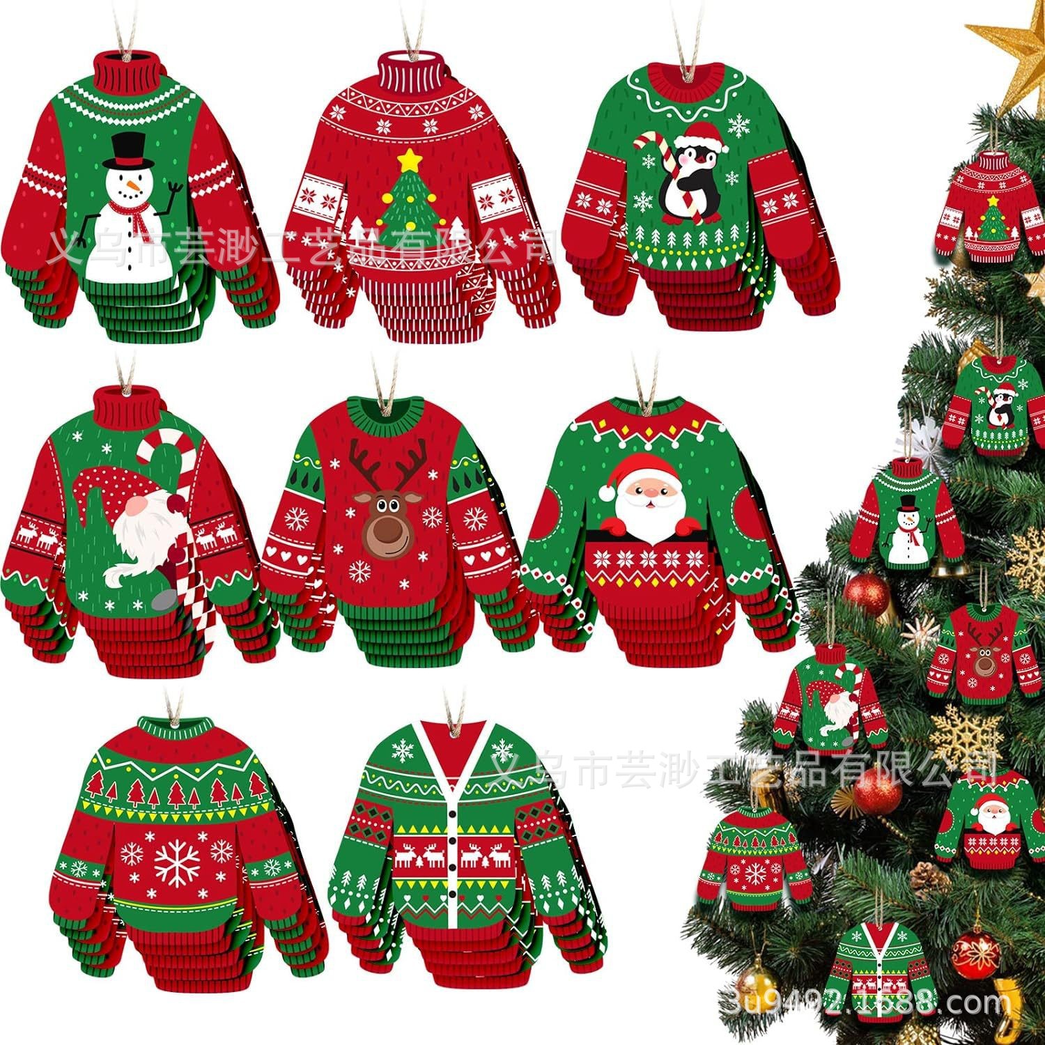 跨境新品24件创意圣诞元素毛衣木质悬挂装饰冬季节日派对家居装饰