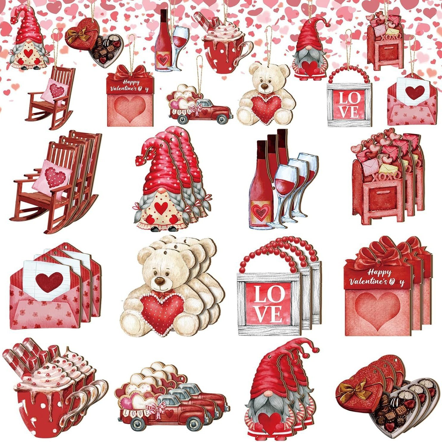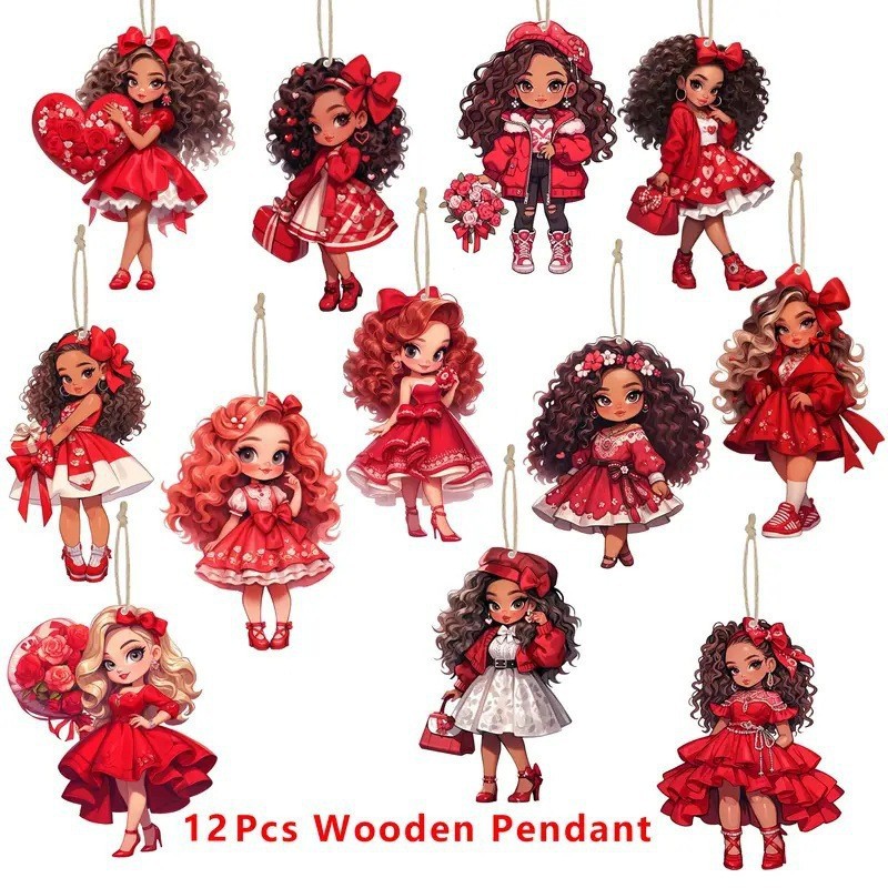 24件情人节天使娃娃木质装饰品节日派对家居小树装饰挂件