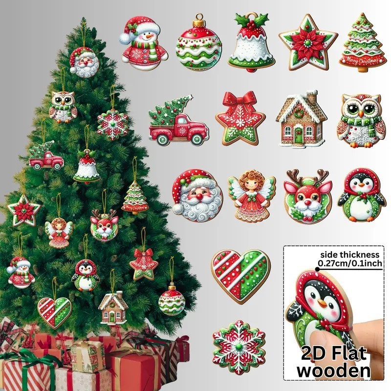 12件圣诞木质悬挂装饰品创意圣诞树装饰适用于节日派对家居装饰