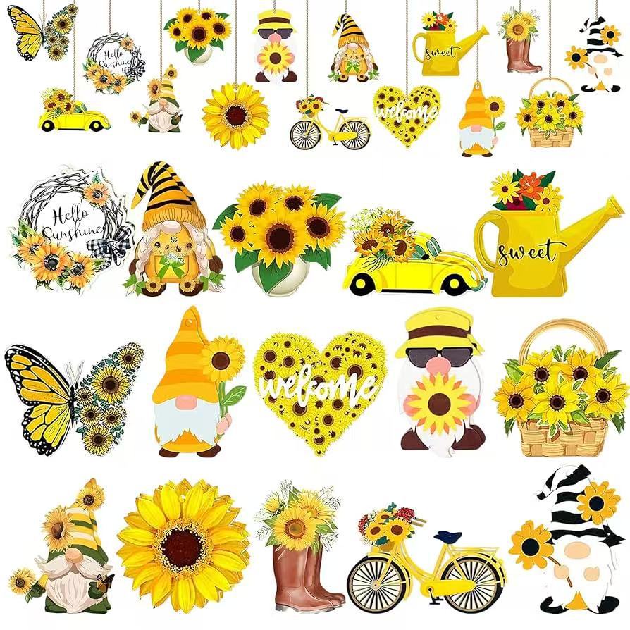 向日葵小矮人装饰树夏季向日葵木质挂饰小矮人圣诞装饰品派对用品