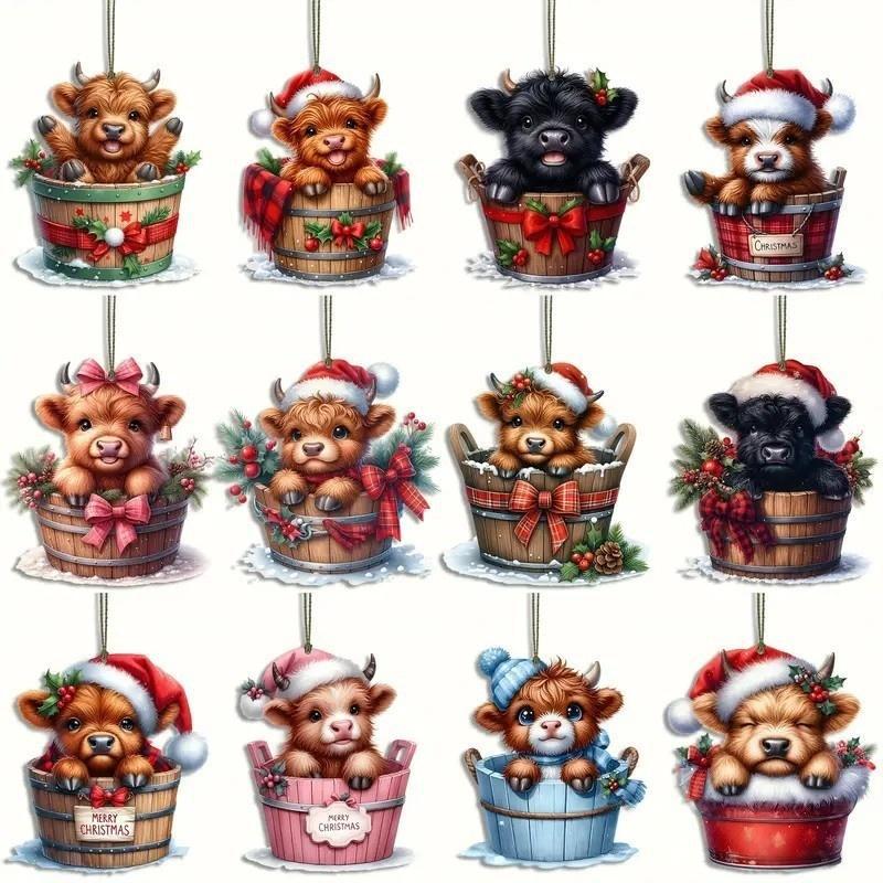 跨境新品36件圣诞木制悬挂饰品创意木桶圣诞牛装饰挂件