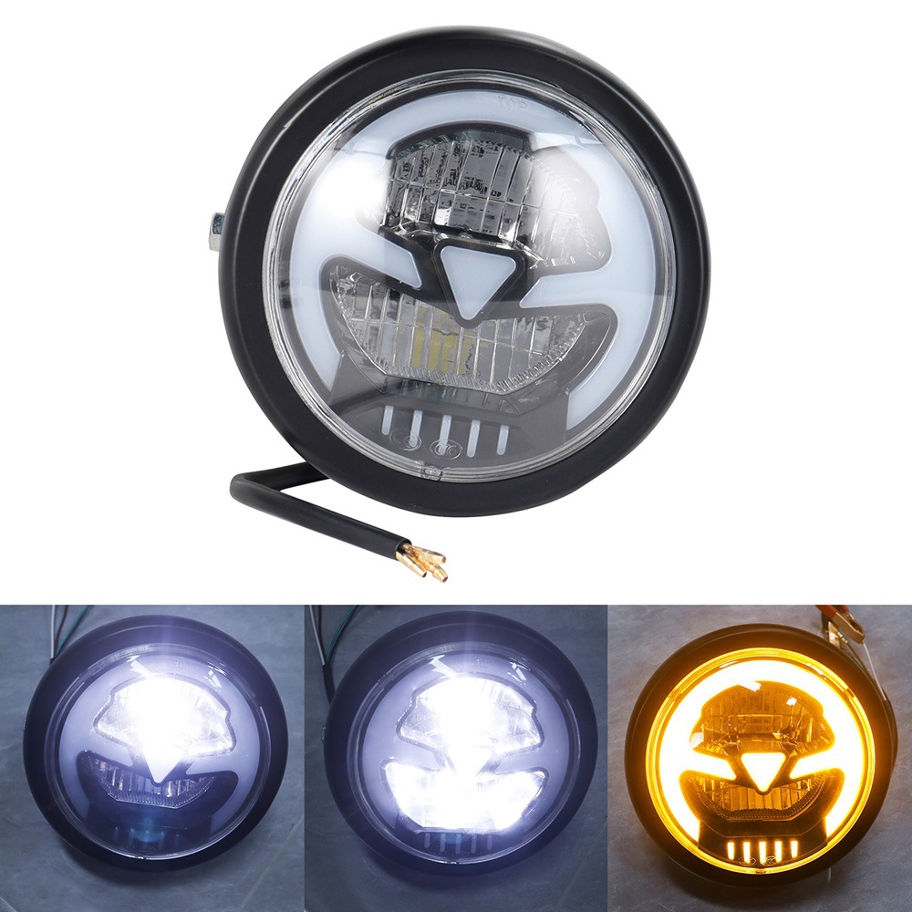 通用复古摩托车改装LED日行光圈前照大灯哈雷摩托车前大灯复古灯