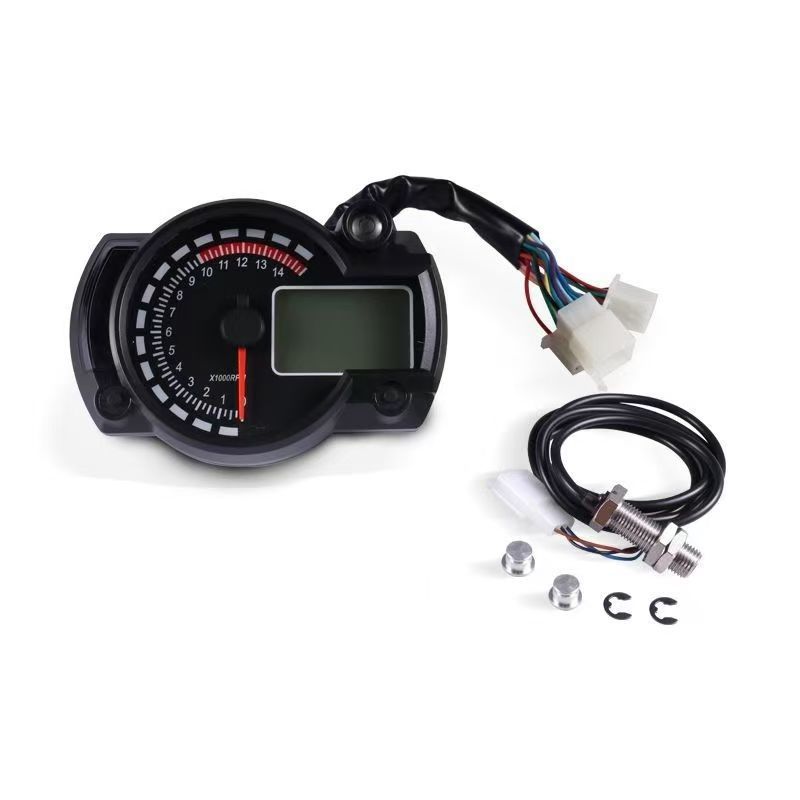 摩托车一体LED液晶显示仪表总成仪表复古改装仪表里程表转速油量